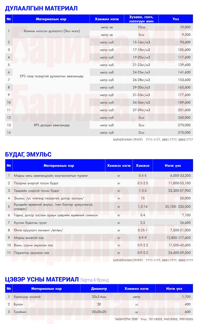 сэтгүүлээс сар бүр хүргэдэг барилгын материалын үнэ ханшийн мэдээллийг уншигч танд хүргэж байна. Илүү дэлгэрэнгүй мэдээлэл авахыг хүсвэл манай сэтгүүлийн 2018 оны 7-р сарын дугаар №98-aaс үзэх боломжтой.