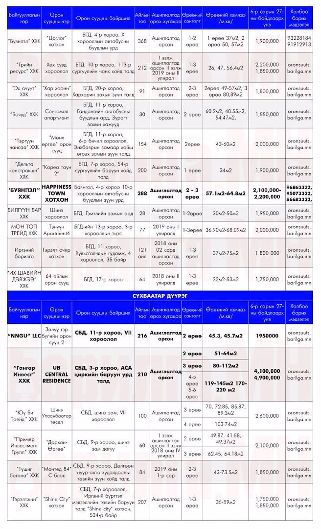 Дээрх орон сууцнуудын мэдээллийг дэлгэрэнгүй харах бол ЭНД дарна уу