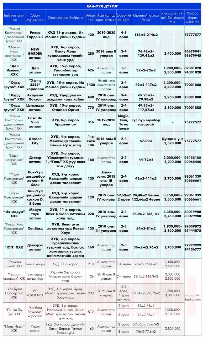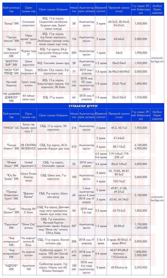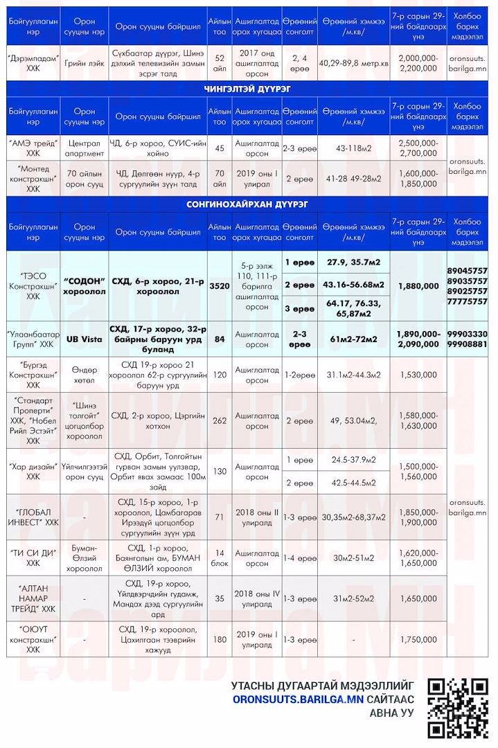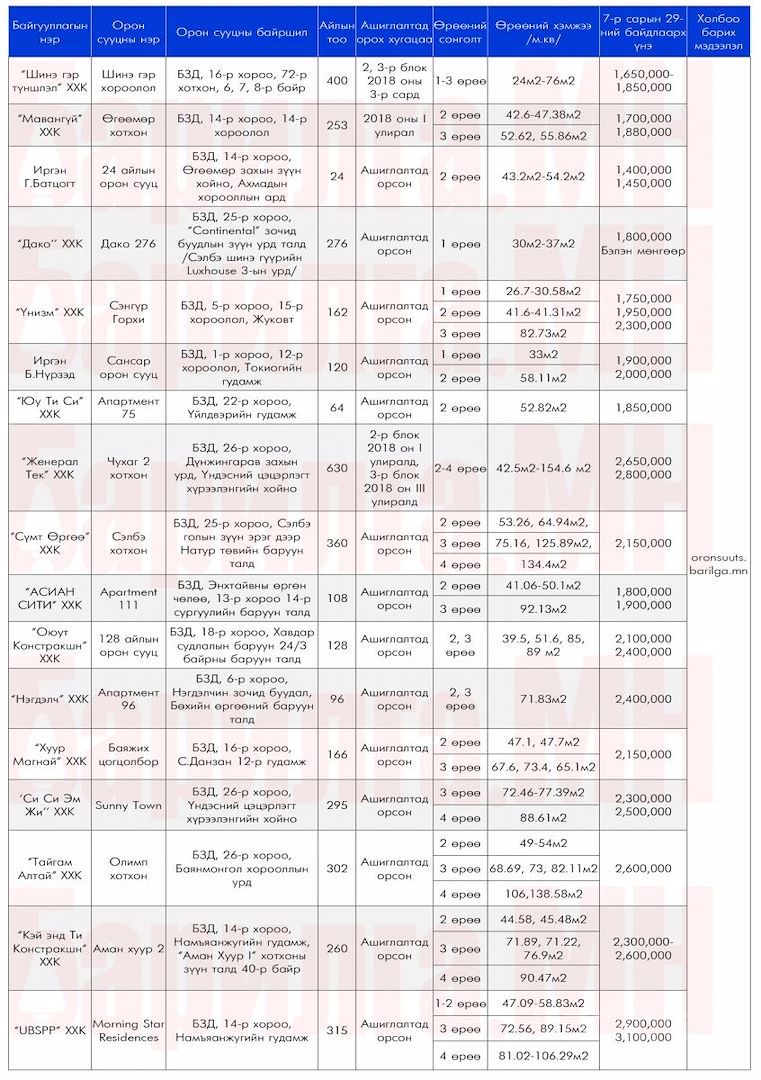 Дээрх орон сууцнуудын мэдээллийг дэлгэрэнгүй харах бол ЭНД дарна уу