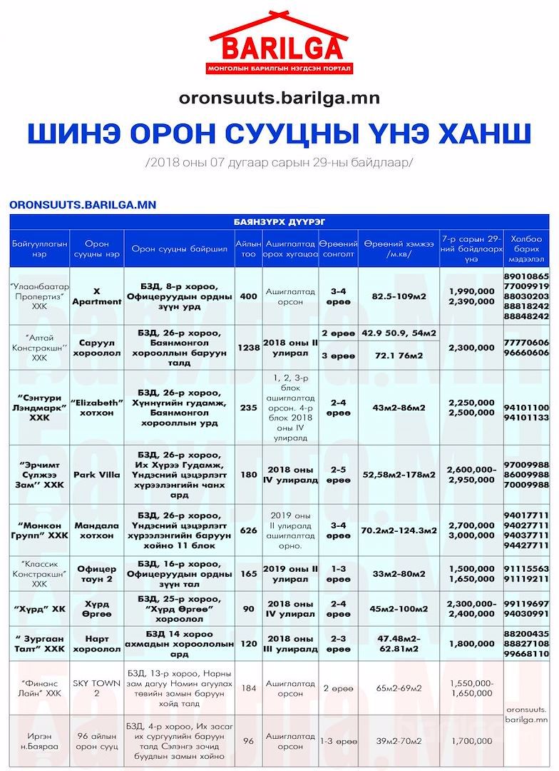 ШИНЭ ОРОН СУУЦНЫ үнэ ханшийн мэдээллийг