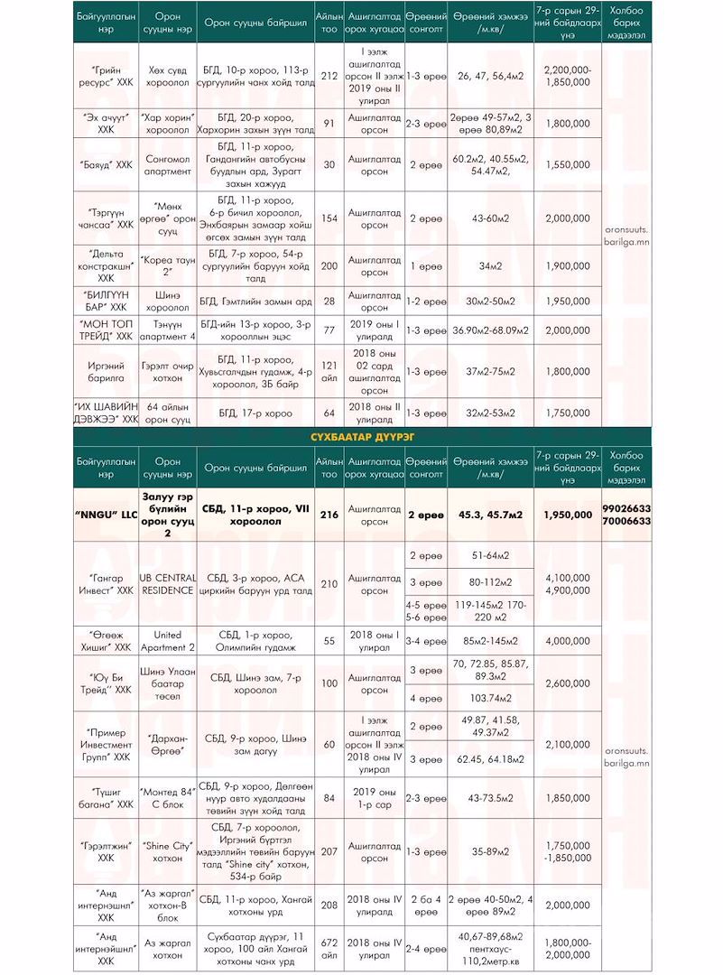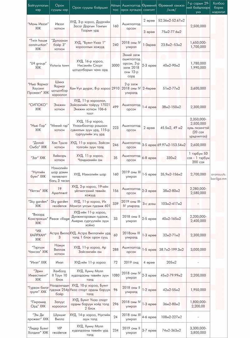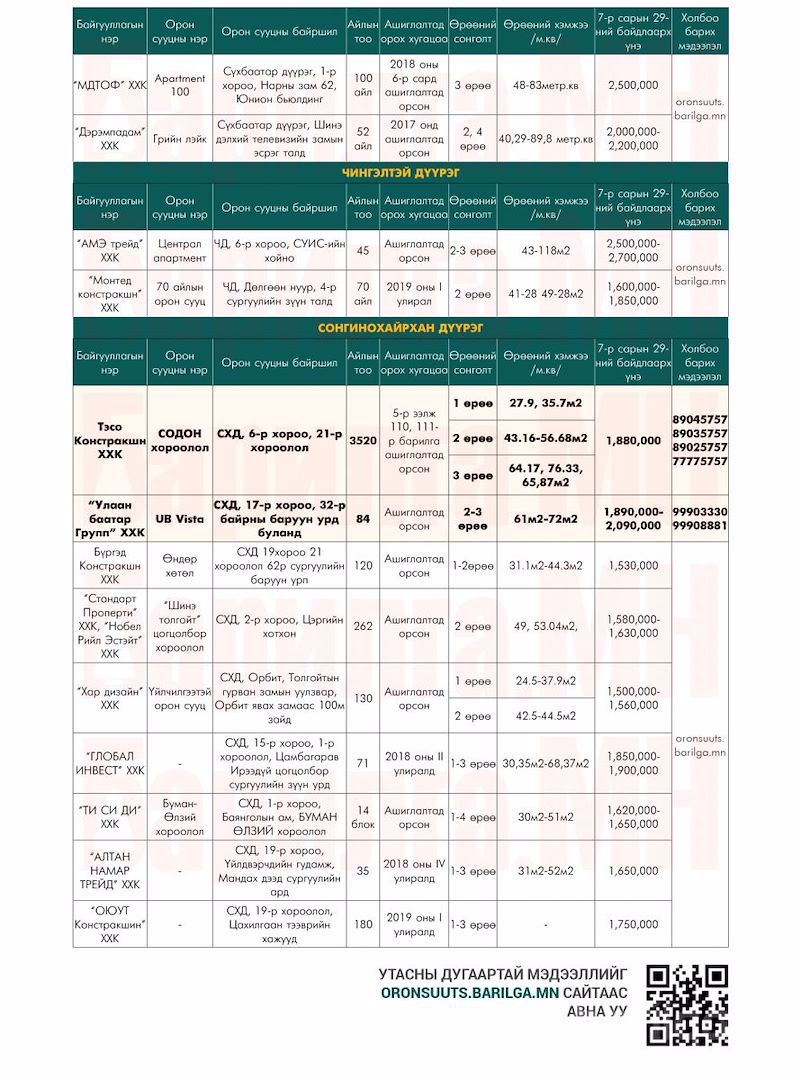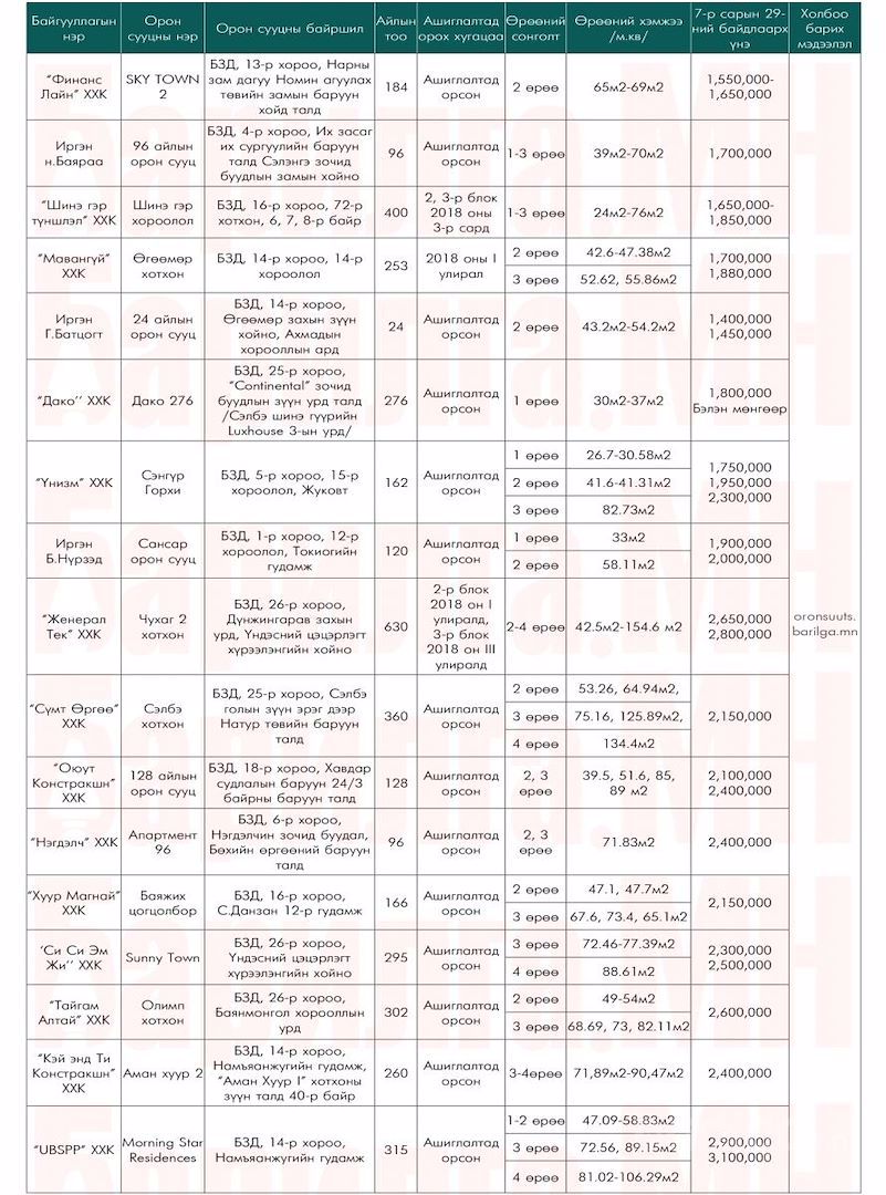 Дээрх орон сууцнуудын мэдээллийг дэлгэрэнгүй харах бол ЭНД дарна уу
