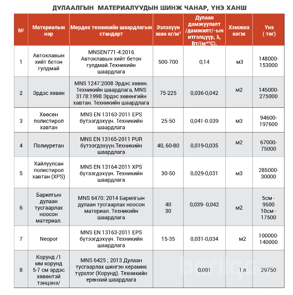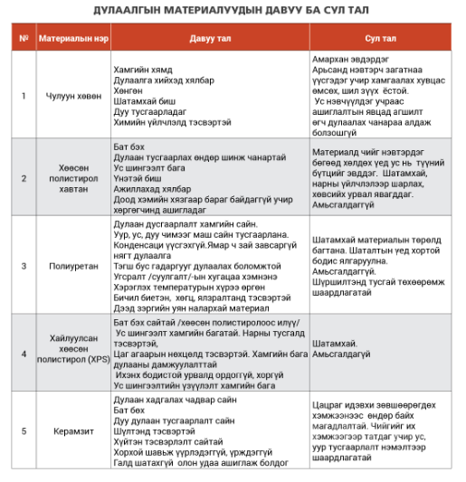 Барилгын салбарт дулаалгын материалуудыг: