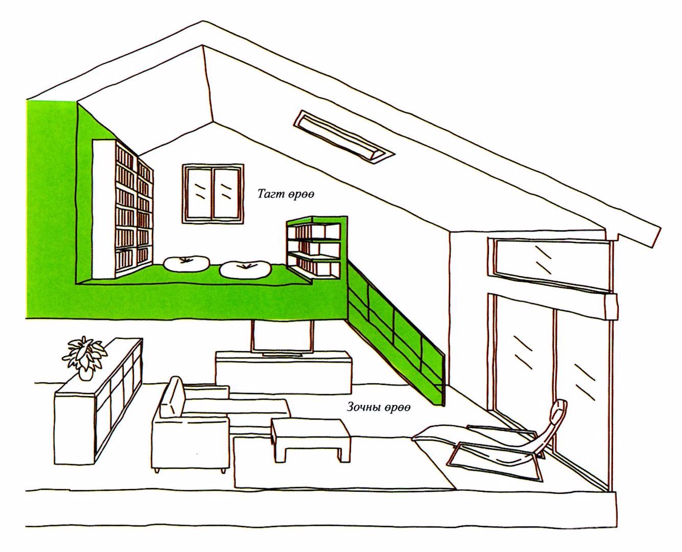 -д хийсэн лофт өрөөг олон төрлөөр ашиглах нь: