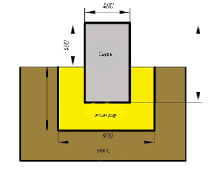 Элс хайрган дэр хэрэглэх шийдлийн хувилбарын бүдүүвчийг зураг -4-т үзүүлэв. Дэрэнд том ширхэгтэй элс, хайрган хөрс ашиглах ба 20 см-ийн зузаантайгаар үечлэн нягтруулж бэлтгэнэ. Элс хайрган дэрний зузааныг хөрсний нөхцлөөс хамааруулан тооцоогоор сонгож авах буюу 60-100см байна.