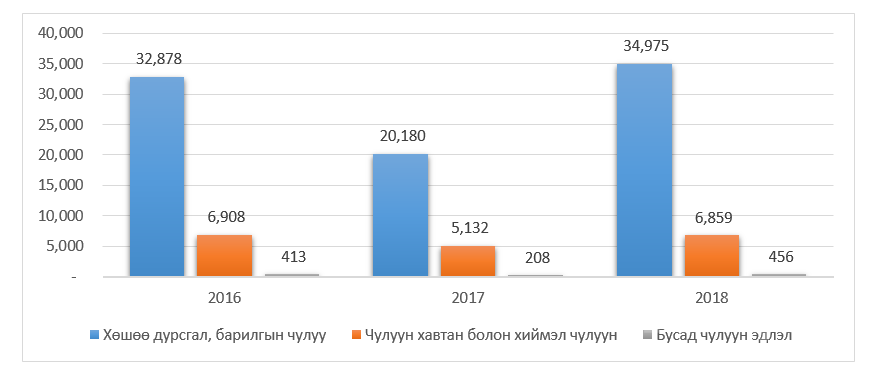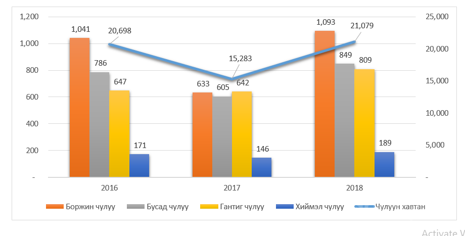 Чулуун эдлэлийн 99 хувийг БНХАУ-аас авч байгаа бөгөөд БНСАУ, ОХУ зэрэг орноос бага хэмжээгээр худалдан авч байна. Иймд 2018 оны мэдээллийг бүтээгдэхүүний 3 ангиллаар харуулж байна.