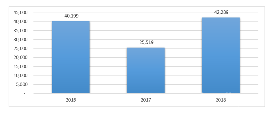 Зураг 1. Чулуун эдлэлийн импорт, 2016-2018 он, тонн