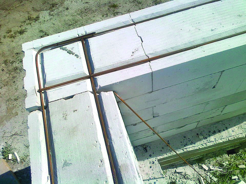 9. Эхний үе болон 2 дахь үеийг өрөөд бат бэхийг нэмэгдүүлэхийн тулд 6-10мм диаметртэй 2 эгнээ арматурыг /блокны өргөн 250-500мм/ ханын уртын дагуу хийж өгвөл сайн Үүний тулд ховил татагчаар болон гар хөрөөний тусламжтай ховил гаргаж өгнө. Арматурыг тавихаас өмнө ховилд цавуу түрхэнэ. Булангийн хэсгийн ховилыг дугуйлж гаргана.