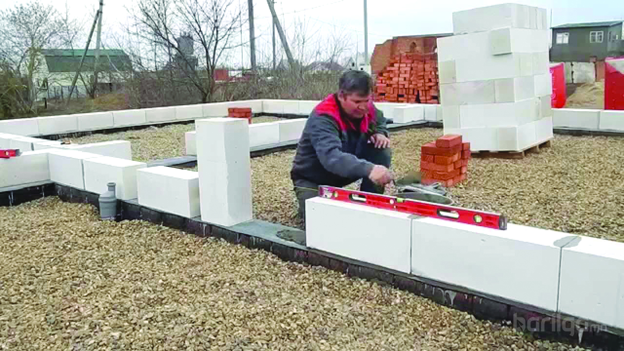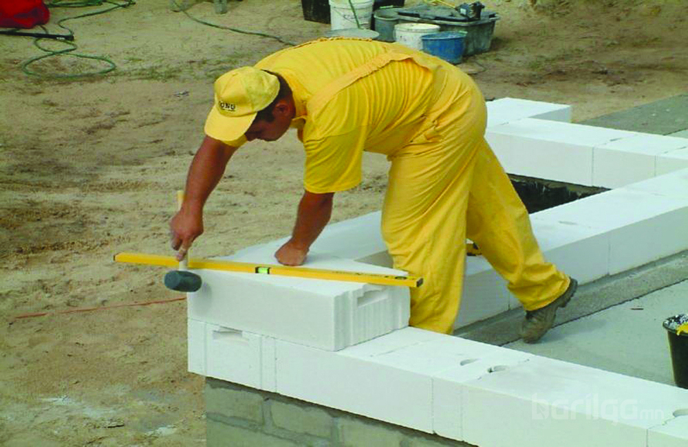 7. Эхний үеийн цавуу бүрэн барьцалдсаны дагуу /1-2 цаг/ 2 дахь үеийг өрж эхлэхэд бэлэн болно. Өргийг булангаас эхлүүлэх ба блокыг ам дарж өрөхдөө мөн тэгш ус, резинэн алхыг ашиглана.