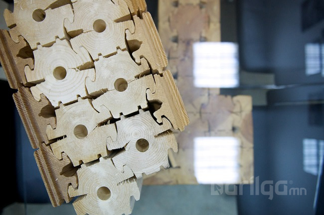 Энэхүү барилгын газрын түвшингээс дээшхи хэсгийг үндсэндээ нэг өргөх кран, цахилгаан отверткан багаж бүхий 5 ажилчин ажлын 28 хоногт багтааж барьжээ.