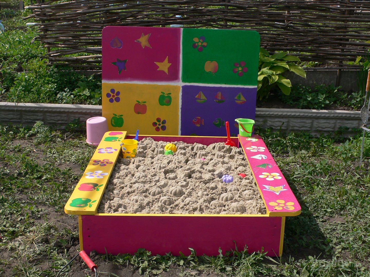4 брусээ элсний талбайн буланд байрлуулан 15-20 см хөрсний гүнд суулган бэхэлнэ. Элсний хайрцагны ханын самбарыг 30 см өндөртэй хийх ба 10 см өргөнтэй 3 эгнээ банзыг холбож хадаад булангийн брусэнд хадаж бэхэлнэ. Дараа нь нугасны тусламжтай эвхэгдэж түшлэгтэй сандал болдог модон тагийг бэлтгэж элсний хайрцагт бэхлээрэй.