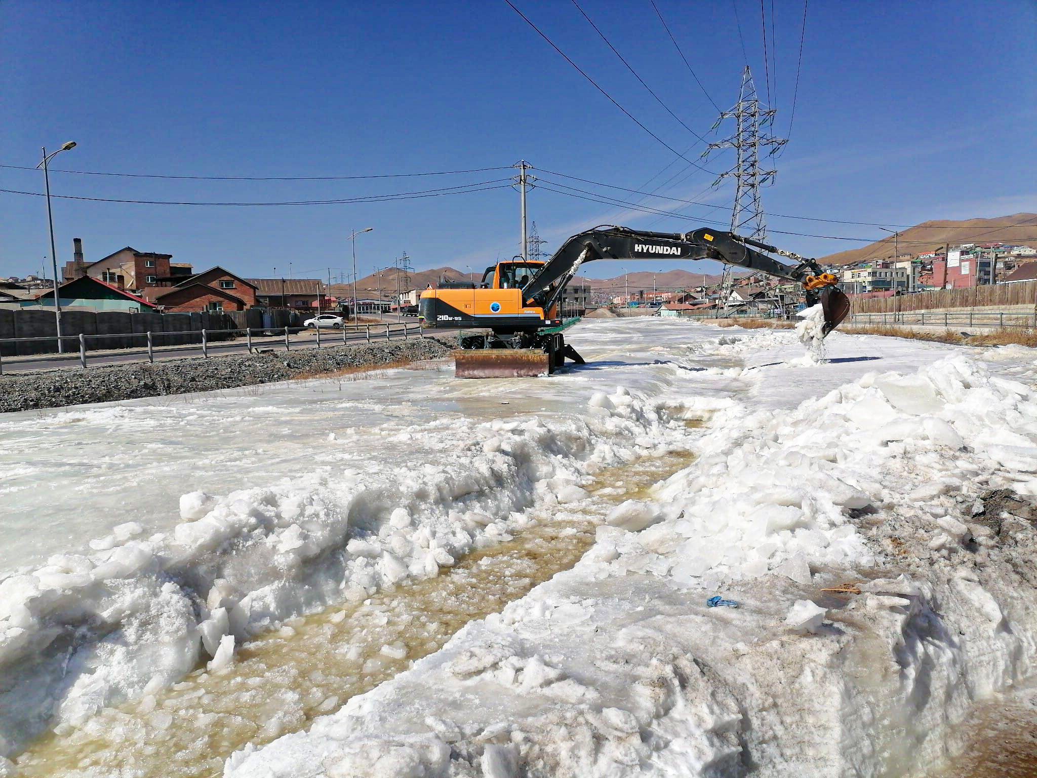 Нийслэлийн онцгой комиссоос үерийн шар түвшин тогтоосонтой холбоотой халиа тошин үүсэж халих эрсдэлтэй байгаа цэгүүдээс мөсийг зөөн тээвэрлэх ажлыг Улаанбаатар хотын захирагчийн албанд үүрэг болгосон. Манай байгууллага жил бүр 10 орчим байршилд 5500 м3 талбайг сувагчлах, хажууугаар нь хорио боолт босгох, цас мөсийг зөөн тээвэрлэх ажлыг хийдэг. Энэ жилийн хувьд шар усны үерээс урьдчилан сэргийлэх ажлын хүрээнд инженерийн хийцлэлтэй барилга байгууламжийн Толгойтын суваг, Дэнжийн 1000-ын 1,3-р суваг, Сүхбаатар дүүргийн 11-р хорооны суваг, Чингэлтэйн үерийн хамгаалалтын суваг, Сэлбэ гол дагуу гаргалгаа хоолойг нээх, сувагчлалын ажлуудыг хийж гүйцэтгэсэн. Харин лаг шавар цэвэрлэх ажлын төлөвлөгөө Улаанбаатар хотын захирагчийн ажлын алба дээр хийгдээд бэлтгэл ажил хангагдаад явж байна.