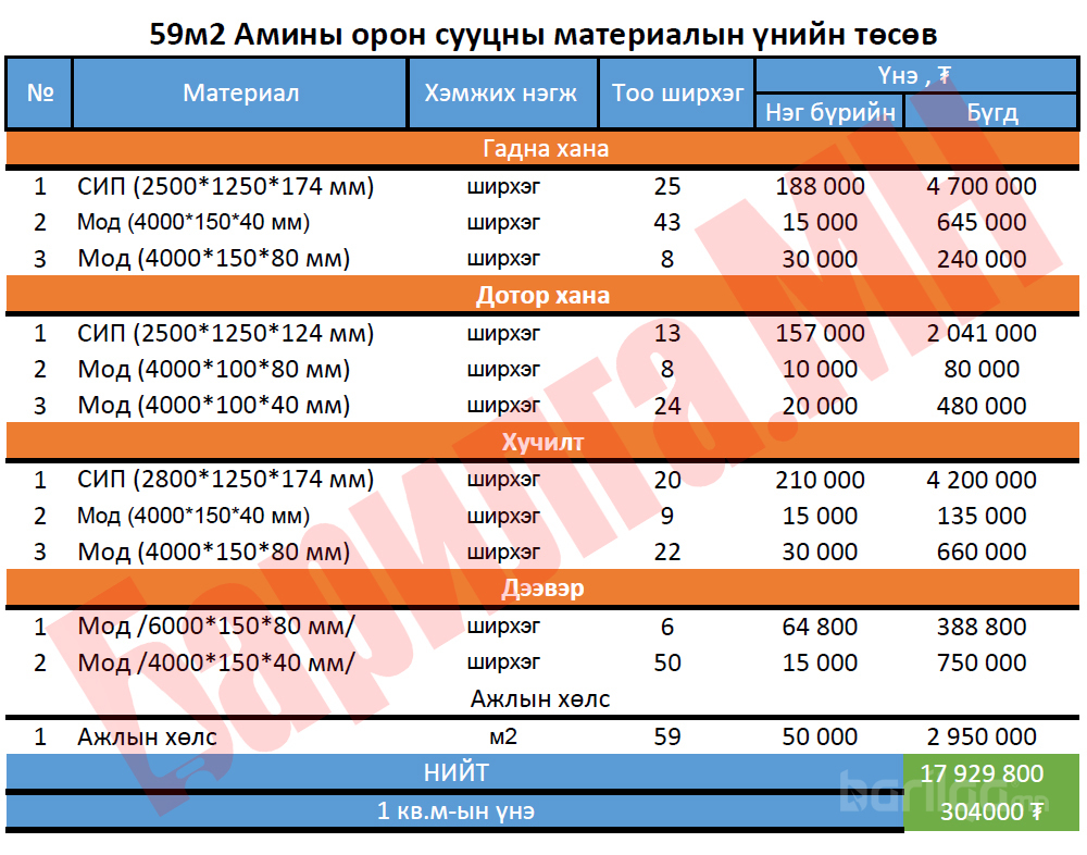 Боломжийн үнэ. Барилгыг барих зардал хамгийн бага