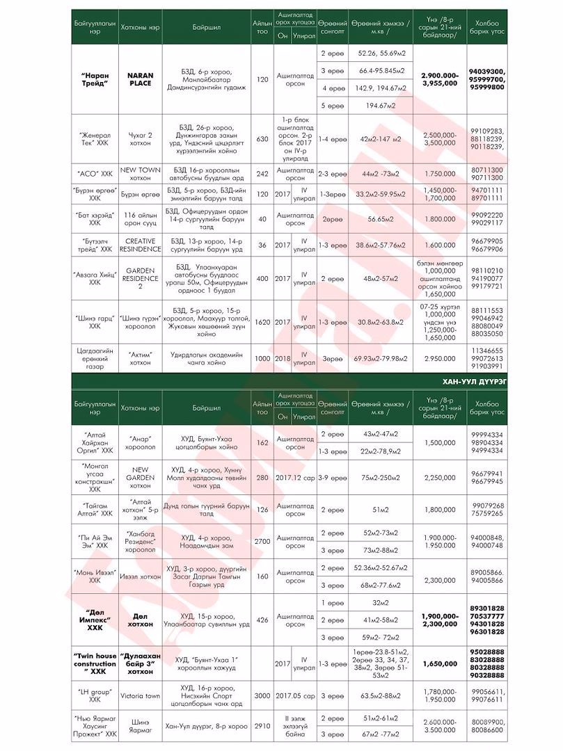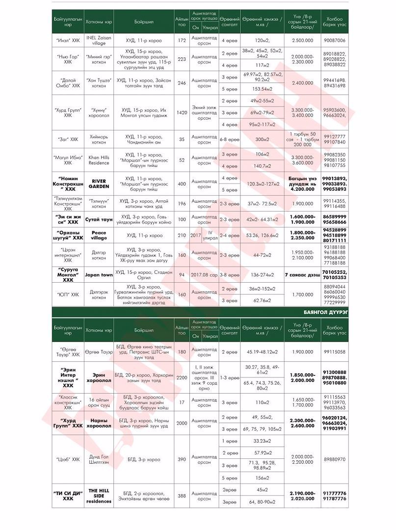 Шинэ орон сууцны үнэ ханшийн мэдээлэл /8-р сарын байдлаар/