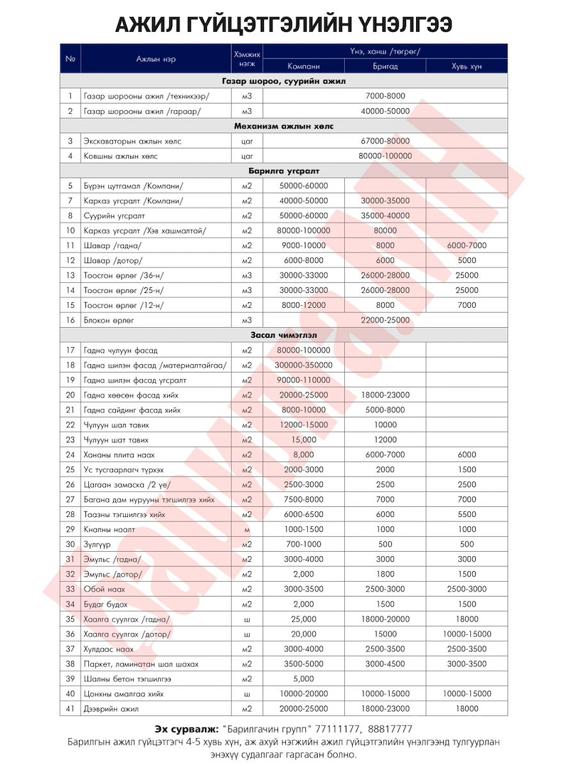 сэтгүүлээс сар бүр хүргэдэг барилгын материалын үнэ ханшийн мэдээллийг уншигч танд хүргэж байна. Илүү дэлгэрэнгүй мэдээлэл авахыг хүсвэл манай сэтгүүлийн 2017 оны 8-р сарын дугаар №87-оос үзэх боломжтой.